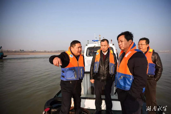12月25日,省水运管理局党委书记、局长李建斌来到湘江文泾滩督导战枯保畅工作,局党委委员、副局长刘仁煦参加督导。