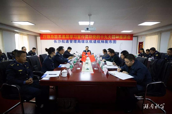 周海兵与长沙航道基层党员干部座谈交流学习贯彻十九大精神心得体会,强调新时代通过强化科技、改革推动工作